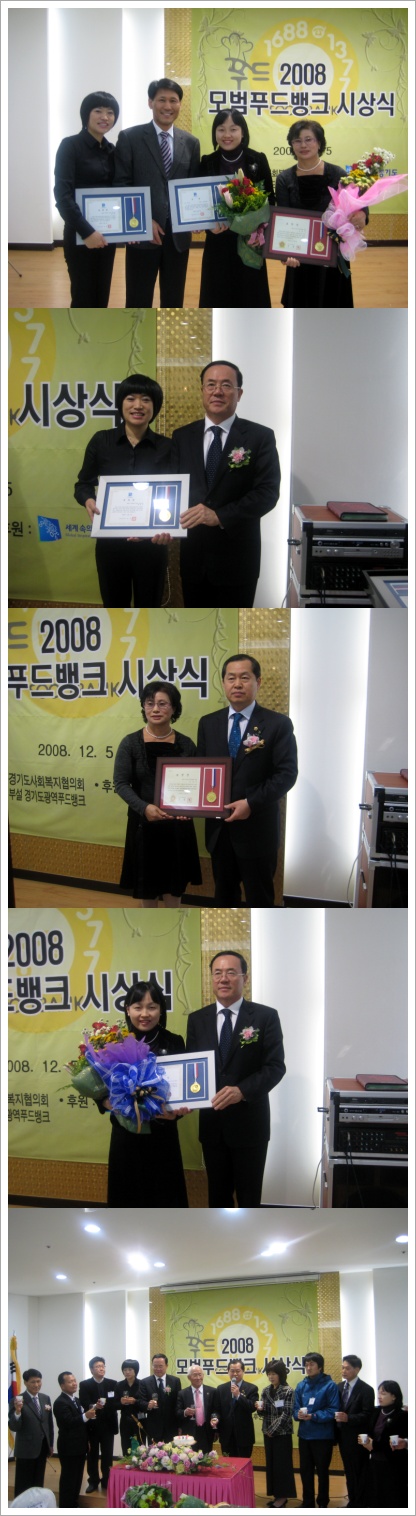 한국지역복지봉사회(대표이사 조승철)에서 운영하는 광명푸드뱅크가 경기도에서 후원하고 경기도푸드뱅크에서 주최하는 2008 모범푸드뱅크 시상식에서(12월 5일) 최고 우수 기탁처로 경기도지사상을 수상하였다. 또한 우수기탁자로 백명순 광명푸드뱅크 운영위원장이 경기도지사상을, 우수자원봉사자로는 전재선(하안1동)이 경기도의회 의장상을 수상했다.