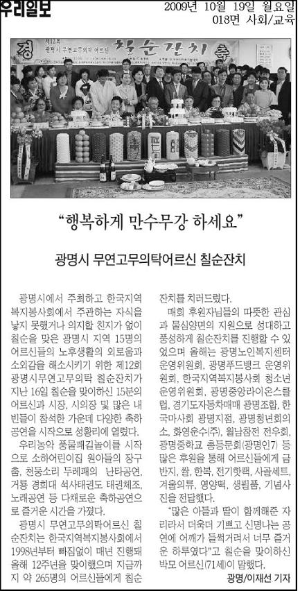 제12회 광명시무연고무의탁 어르신 칠순잔치 페이지 정보 작성자 최고관리자 댓글 0건 조회 8,202회 작성일 09-10-23 00:00 본문 제12회 광명시무연고무의탁 어르신 칠순잔치 목록 이전글제12회 광명시무연고무의탁 어르신 칠순잔치 09.10.23 다음글봉사는 동정아닌 아픔고통을 함께 나누는 것 09.09.23