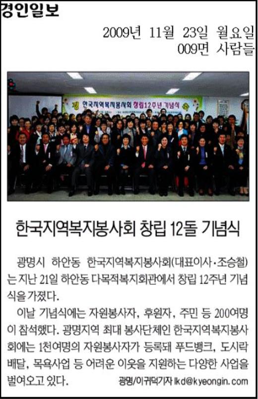 한국지역복지봉사회 창립 12주년 기념 페이지 정보 작성자 최고관리자 댓글 0건 조회 8,401회 작성일 09-11-24 00:00 본문 한국지역복지봉사회 창립 12주년 기념 목록 이전글2009 사랑의 김장김치 나눔마당 09.11.26 다음글제12회 광명시무연고무의탁 어르신 칠순잔치 09.10.23