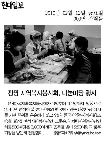 2010년 떡국떡 만두나눔마당 보도자료 페이지 정보 작성자 최고관리자 댓글 0건 조회 8,095회 작성일 10-02-16 00:00 본문 2010년 떡국떡 만두나눔마당 보도자료 목록 이전글제10회 풍성한 한가위 푸드뱅크 나눔마당 소식(광명인터넷방송) 10.10.20 다음글2010년 떡국떡 만두나눔마당 보도자료 10.02.16